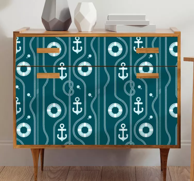 참조:: A49487매력적인 해양 테마를 특징으로 하는 이 디자인은 앵커와 구명부표가 리드미컬한 패턴으로 배열되어 있습니다. 선과 원형 요소의 조합은 해양적인 느낌을 불러일으켜, 해안에서 영감을 받은 공간을 더욱 돋보이게 합니다.