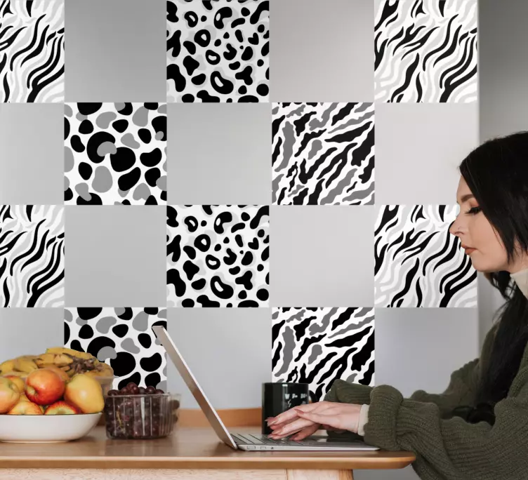 장식 벽 스티커 우아한 패턴 타일우리의 장식 벽 스티커 우아한 패턴 타일은 현대적이고 기하학적인 디자인으로, 타일과 단색화, 표범과 동물 무늬가 조화를 이루어 실내 공간에 세련됨을 더합니다. 이 제품은 공간을 더욱 매력적으로 만들어 주며, 다양한 스타일과 조화를 이루는 독창적인 매력을 지니고 있습니다.