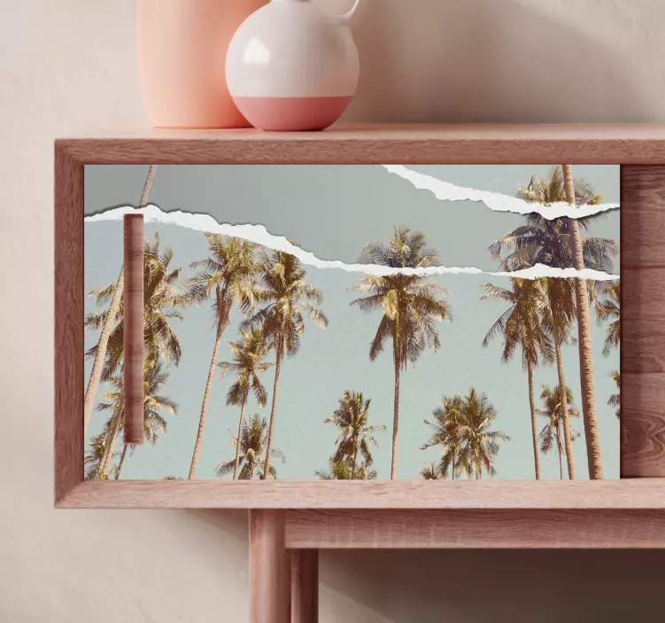 가구 스티커 트로피컬 팜 뷰자연의 아름다움을 집안으로 가져오는 가구 스티커 트로피컬 팜 뷰는 야자수와 손바닥이 그려진 그래픽 디자인으로, 찢어진 종이가 어우러져 열렬하고 평화로운 분위기를 연출합니다. 이 제품은 자연의 요소를 집 안에 들여놓아 편안한 휴식 공간을 제공하며, 다양한 가구와 잘 어울립니다.