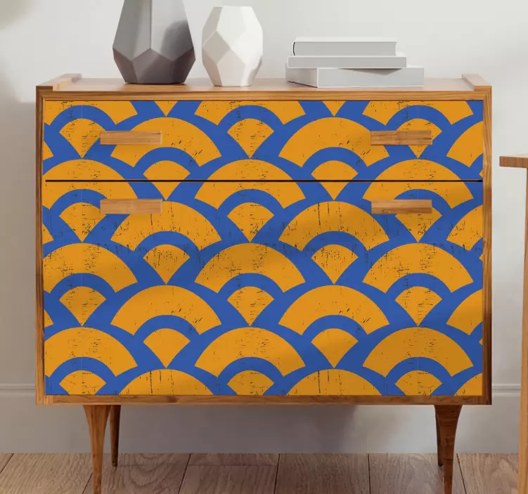 가구 스티커 물결무늬 오버레이우리의 가구 스티커 물결무늬 오버레이는 세련된 디자인으로 다양한 공간을 아름답게 꾸며줍니다. 기하학적인 패턴과 미니멀한 스타일이 조화를 이루며, 푸른색과 오렌지색의 조합이 공간에 활력을 불어넣습니다. 이 제품은 당신의 가구를 돋보이게 하고, 독특한 매력을 더해줄 것입니다.