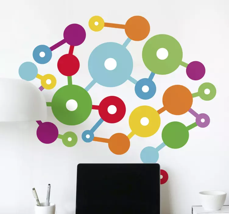 참조:: A51213이 생동감 넘치는 디자인은 선으로 연결된 다양한 원형 모양들이 어우러져, 경쾌하고 역동적인 시각적 효과를 만들어냅니다. 다양한 색상의 사용은 활기찬 느낌을 더해 현대적인 공간에 적합하며, 어떤 환경에서도 창의성과 영감을 촉진합니다.
