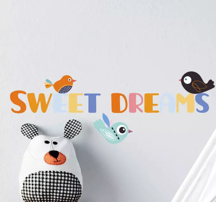 머리판 벽 스티커 다채로운 밤 문구우리의 머리판 벽 스티커는 사랑스럽고 장난스러운 디자인으로, 새와 조류, 달콤한 꿈을 주제로 한 여러 가지 빛깔의 삽화가 특징입니다. 유아 친화적인 요소가 가득한 이 제품은 다채로운 글자로 구성되어 있어, 아이들의 방을 더욱 아늑하고 즐거운 공간으로 만들어줍니다.
