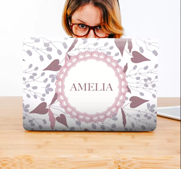 참조:: A46579섬세한 잎과 하트로 구성된 매력적인 꽃무늬가 이름을 위한 맞춤형 섹션을 둘러싸고 있습니다. 이 우아한 디자인은 어떤 표면에도 개인적인 터치를 더해주며, 미적 매력을 향상시키는 동시에 개성과 창의성을 허용합니다.