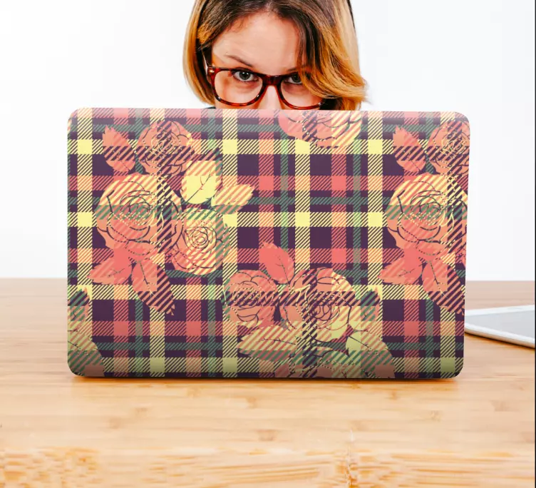 정보 노트북용 스킨 플로랄 체크 오버레이