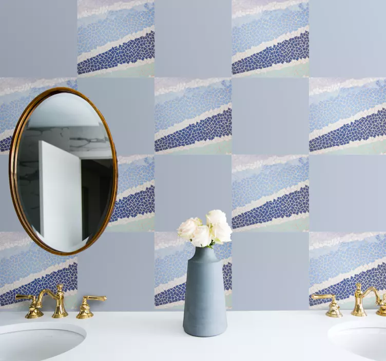 참조:: A51654다양한 파란색 톤의 질감 있는 물결 모양 디자인이 특징인 추상적인 패턴의 모자이크. 이 매력적인 구성은 깊이와 세련미를 더해주며, 실내 공간을 향상시키기에 적합합니다. 형태의 상호작용은 시각적으로 역동적인 효과를 만들어내어 눈길을 끌며, 현대적인 장식에 강렬한 선택이 됩니다.