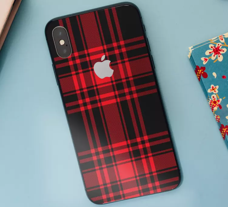 멘지스 타탄 블랙 레드 체크 패턴 아이폰 데칼