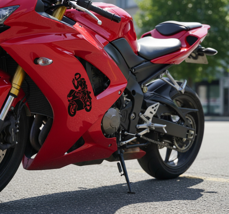 이 이미지는 라이더가 평화의 손가락 표시를 하고 있는 독특한 디자인 요소가 있는 생동감 넘치는 오토바이를 특징으로 합니다. 이 상징은 종종 조화와 자유로운 정신을 나타내며, 라이딩의 기쁨과 애호가들 간의 우정을 구현합니다. 이는 자유와 열린 도로의 스릴을 나타내는 것입니다. 오토바이 스티커 인사말 모토 악센트