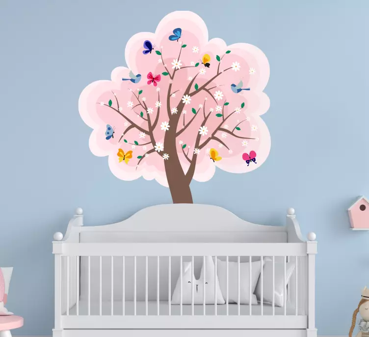 참조:: A48286활짝 핀 생기 넘치는 나무는 다채로운 나비와 섬세한 꽃들로 장식되어 있습니다. 이 즐거운 장면은 자연의 아름다움을 포착하여 어떤 공간에도 기분 좋은 터치를 더해줍니다. 분홍 꽃과 장난기 가득한 나비의 조합은 매력적인 분위기를 만들어냅니다.