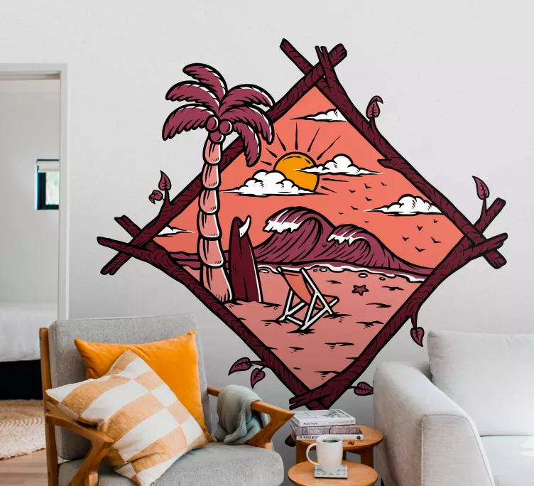 자연을 테마로 한 스티커 열대 해변 풍경는 눈부신 일몰과 함께 파도가 부서지는 해변의 아름다움을 담아내는 독특한 디자인입니다. 이 스티커는 외로운 서퍼와 해변 의자, 시원한 야자수, 그리고 우아한 산의 풍경을 그래픽으로 표현하여 보는 이에게 기분 전환의 순간을 선사합니다. 자연을 테마로 한 스티커는 여러분의 공간에 휴양지의 느낌을 불어넣어 주며, 일상에서 벗어나 여행의 설렘을 느끼게 해줄 것입니다.이 제품을 장식용으로 사용해야 하는 이유