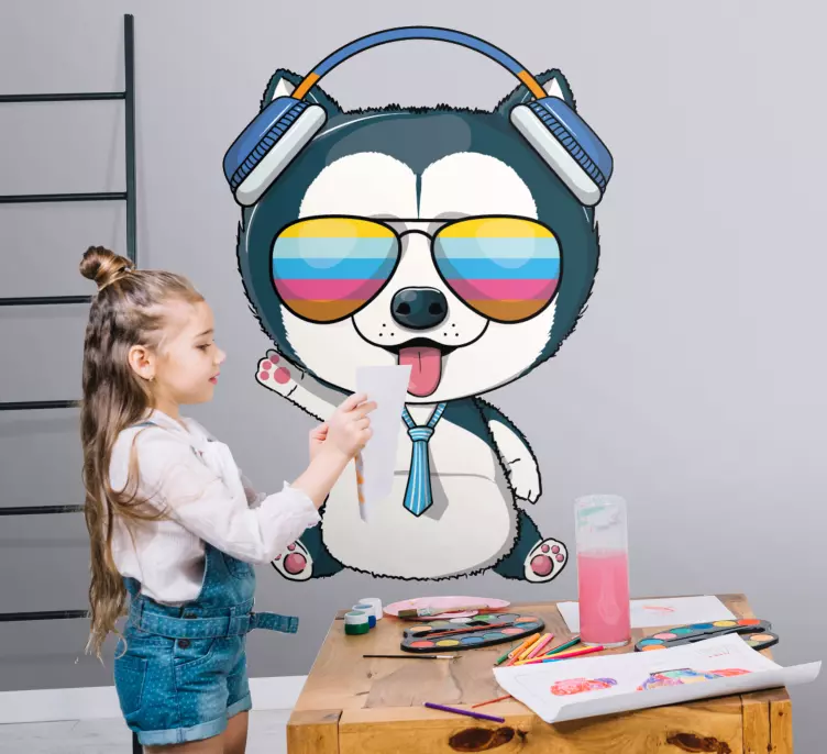 참조:: A48961스타일리시한 선글라스와 헤드폰을 착용한 즐거운 반려동물이 있는 매력적인 캐릭터. 유쾌한 디자인은 재미의 본질을 포착하여 어린이 공간에 완벽합니다. 독특한 스타일과 생동감 있는 색상은 기쁜 느낌을 더해주어 창의력과 상상력을 자극합니다.