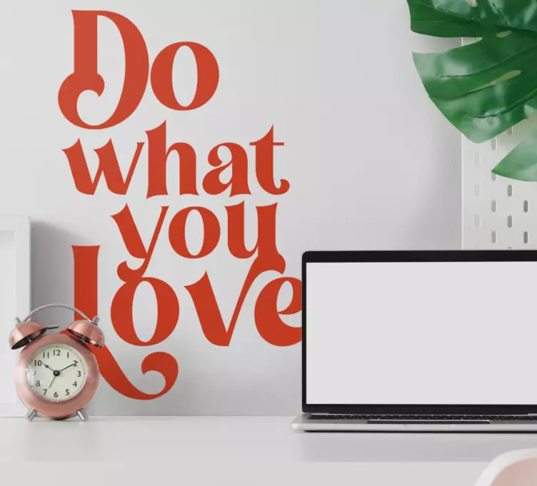 벽 스티커를 인용하다 사랑하는 일을 하세요우리의 벽 스티커를 인용하다 사랑하는 일을 하세요는 현대적인 타이포그래피 디자인으로 사랑과 영감을 주는 메시지를 담고 있습니다. 이 제품은 단색화된 그래픽으로 구성되어 있으며, 하다, 뭐라고 요, 사랑, 구절, 실없는 말, 텍스트, 영감을주는, 동기 부여의 요소를 자연스럽게 결합하여 어떤 공간에서도 특별한 분위기를 연출합니다!