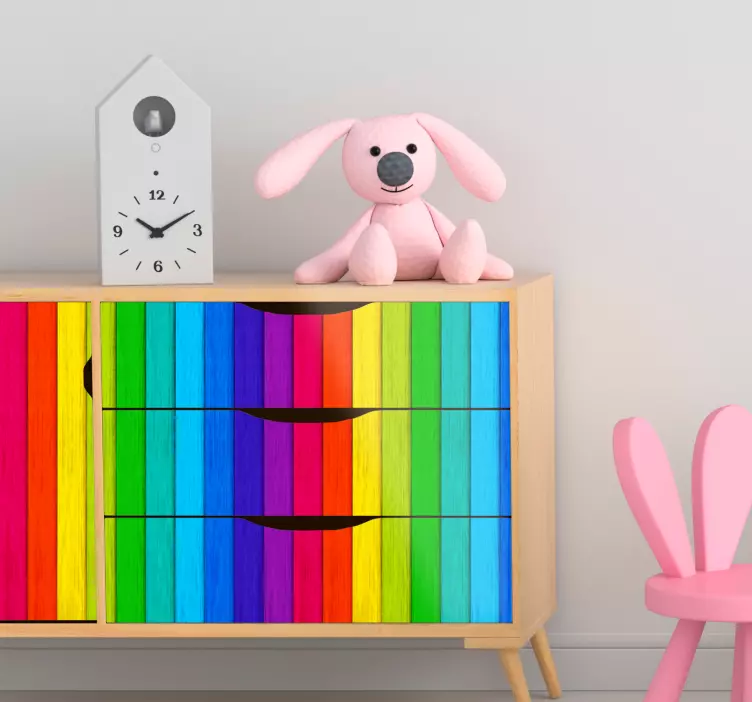 다양한 밝은 색상의 수직 줄무늬로 구성된 생동감 넘치는 배열이 눈길을 끄는 시각적 효과를 만들어냅니다. 이 활기찬 패턴은 여러 표면에 쾌활한 느낌을 더하는 데 완벽하며, 공간에 놀이감과 에너지를 불어넣습니다.