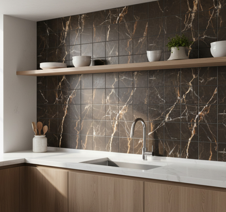 자연석을 연상시키는 복잡한 패턴의 멋진 디스플레이가 특징인 이 디자인은 어떤 실내 공간도 향상시킵니다. 매력적인 질감의 조화가 시각적인 흥미와 세련미를 창출합니다. 현대적인 주방에 이상적이며, 미니멀리즘과 고급스러운 미학 모두에 잘 어울리는 유기적인 터치를 제공합니다. 타일 스티커 블랙 앤 골든 마블는 세련된 디자인과 고급스러운 느낌을 제공하여 어떤 공간에도 잘 어울립니다. 이 제품은 고급스러운 블랙과 골든 마블 패턴으로 제작되어 인테리어의 품격을 높여줍니다. 현대적인 감각을 더해주는 이 타일 스티커는 집안의 분위기를 한층 더 고급스럽고 스타일리시하게 변화시켜 줍니다.