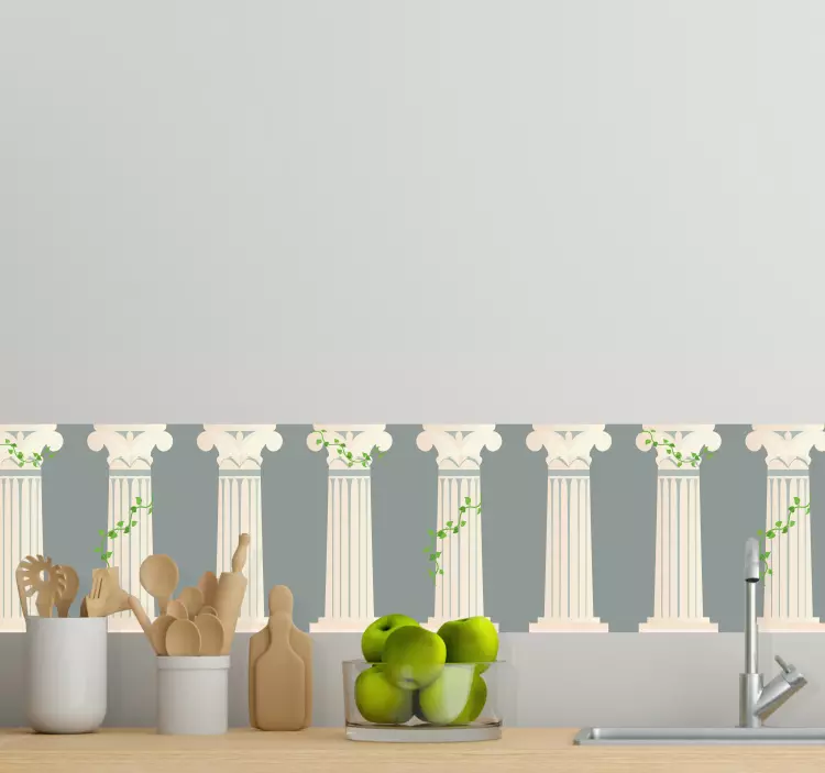 참조:: A49616고전적인 기둥과 섬세한 덩굴이 얽혀 있는 이 악센트는 어떤 공간에서도 우아한 느낌을 제공합니다. 이 디자인은 전통 건축과 자연 요소를 결합하여 주방의 미적 감각을 향상시키고 세련된 분위기를 조성합니다.