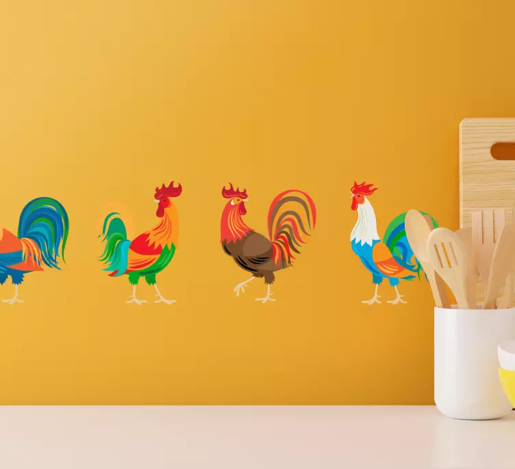 국경 벽 스티커 다채로운 닭 전시는 설치가 매우 간편합니다. 벽면에 부착하기 전에 표면을 깨끗이 닦은 후 부드럽게 붙이면 됩니다. 이 제품은 다양한 공간에 잘 어울리며, 고객의 취향에 따라 쉽게 적용할 수 있습니다.