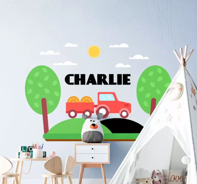어린이를위한 벽 스티커 맞춤형 트럭 장면우리의 어린이를위한 벽 스티커 맞춤형 트럭 장면은 트랙터와 농장, 그리고 장난감 트럭이 함께 어우러진 아름다운 그래픽으로 디자인되었습니다. 이 제품은 어린이들이 사랑하는 자연의 풍경, 푸른 잎과 나무, 그리고 태양이 비치는 환상적인 장면을 제공합니다. 개인화된 디자인으로 아이들의 방을 더욱 특별하게 만들어줍니다!