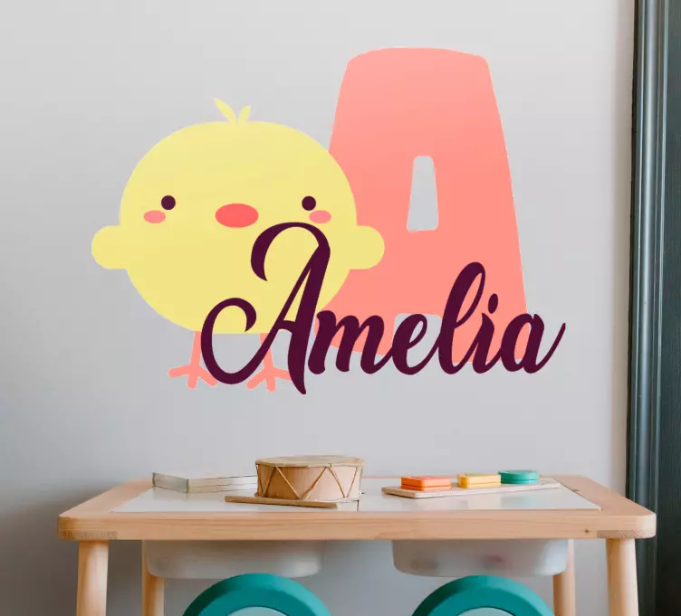 참조:: A48924매력적인 chick 디자인은 친근한 노란 병아리와 다채로운 이니셜, 그리고 사용자 정의 가능한 이름을 특징으로 합니다. 이 장난기 가득한 요소는 아이의 공간에 즐거운 분위기를 만들어 주기에 완벽하며, 그들의 방에 따뜻함과 개성을 더해줍니다.