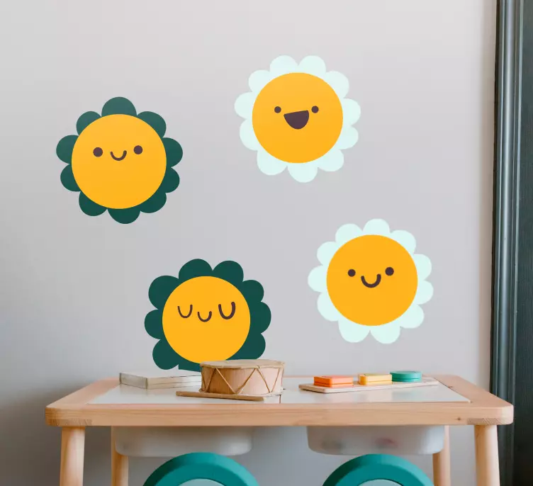 wall sticker for kids 어린이를위한 벽 스티커 행복한 꽃 캐릭터는 간편하게 적용할 수 있습니다. 표면을 깨끗이 청소한 후 스티커를 원하는 위치에 부착하면 됩니다. 설치가 매우 용이하여 아이와 함께 즐거운 시간을 가지며 꾸밀 수 있는 좋은 기회가 됩니다.우리의 벽 데칼은 실내외 조명에 반사되지 않으면서 뛰어난 발색력을 제공합니다. 눈부심 없이 비닐을 더욱 잘 감상할 수 있으며, 젖은 천과 중성 비누로 세척이 가능합니다. 제품의 평량은 80미크론이며 점착제가 내장되어 있어 8~10년의 내구성을 자랑합니다. 평평한 표면에 최적화되어 있으며, 고객의 요청에 따라 맞춤 제작이 가능합니다. 설치가 간편하고 최고급 자재로 제작된 이 제품은 주걱을 사용하여 바를 수 있지만 주걱은 별도 구매입니다. 재사용은 보장할 수 없으므로 한 번만 사용할 수 있습니다.