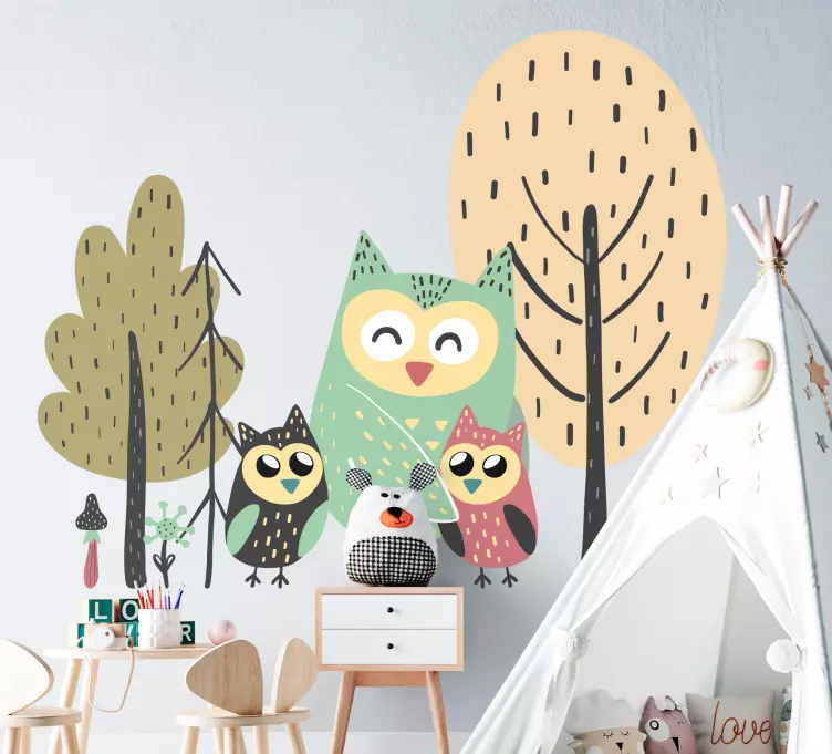 어린이를위한 벽 스티커 행복한 올빼미 가족