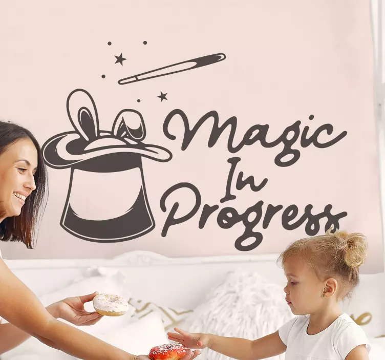 참조:: A46987별과 마법 지팡이 같은 장난기 가득한 요소로 장식된 마법 모자가 있는 매혹적인 장면으로, 창의력을 자극하기에 이상적입니다. 'Magic In Progress'라는 문구는 어린 시절 상상의 기쁨을 포착하며 기분 좋은 공간에 완벽한 기분을 더합니다.