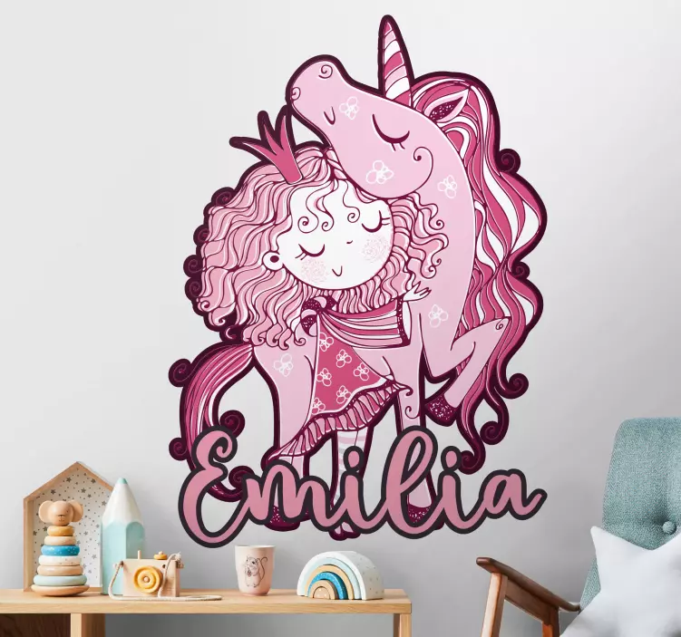 어린이를위한 벽 스티커 핑크 유니콘 포옹