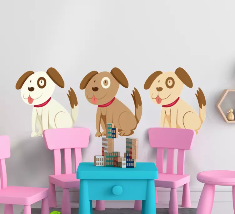 참조:: A48962각기 다른 특징과 표정을 가진 매력적인 세 마리의 장난꾸러기 강아지들. 이 디자인은 아이들 공간에 적합한 즐거운 분위기를 만들어주며, 반려동물을 사랑하는 이들에게 매력적이고 생동감 넘치는 느낌을 선사합니다.