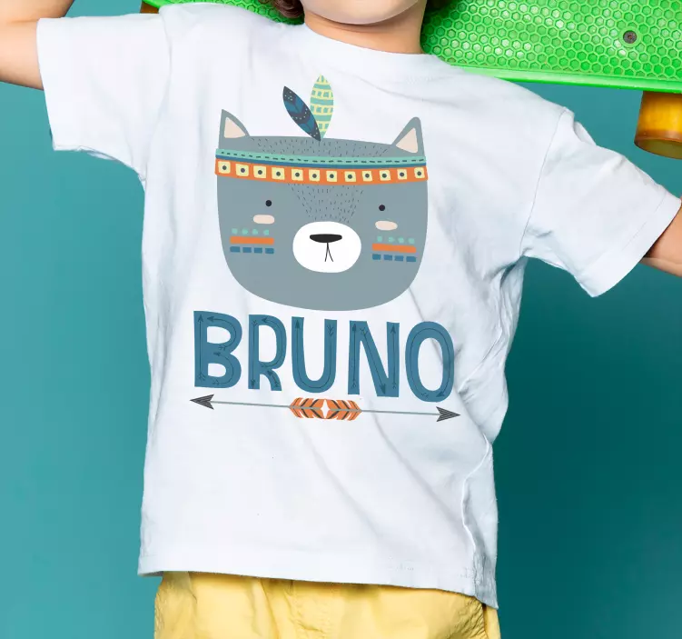 참조:: T4968이 디자인은 귀여운 곰 얼굴과 부족적인 요소가 특징이며, 생동감 넘치는 색상과 개인화된 이름이 강조되어 있습니다. 아이들에게 완벽한 밝은 분위기를 발산합니다. 구성은 매력적이고 시각적으로 매력적이어서 어린이들에게 이상적인 선택입니다.