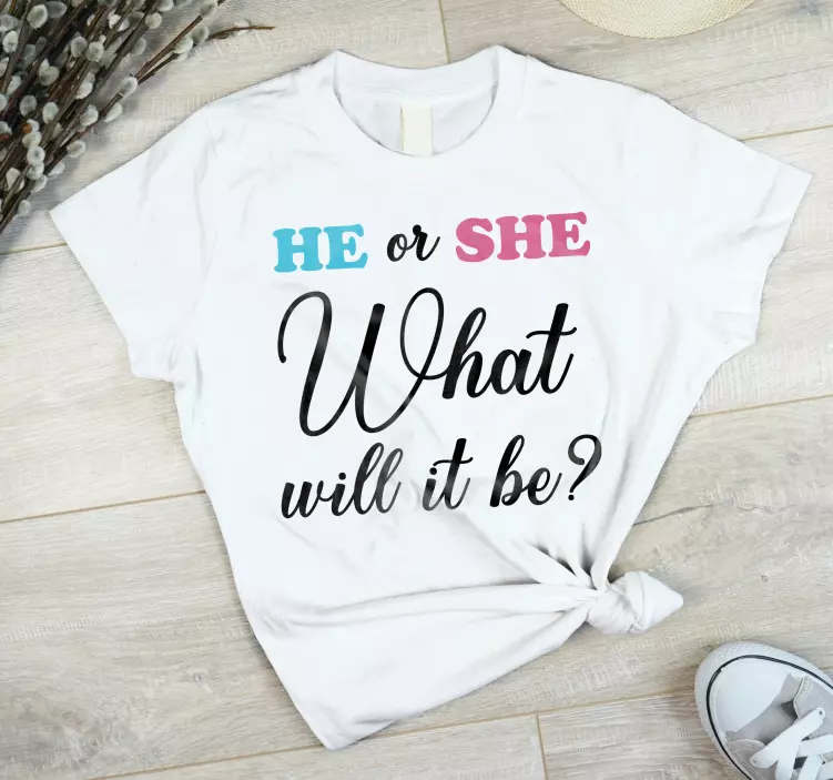 참조:: T4722이 눈길을 끄는 의류는 'What will it be?'라는 재미있는 성별 공개 질문을 특징으로 하며, 생동감 넘치는 텍스트로 구성되어 있습니다. 색상의 유쾌한 사용이 흥미를 더해 가족 축하 행사와 기억에 남는 순간에 완벽합니다.