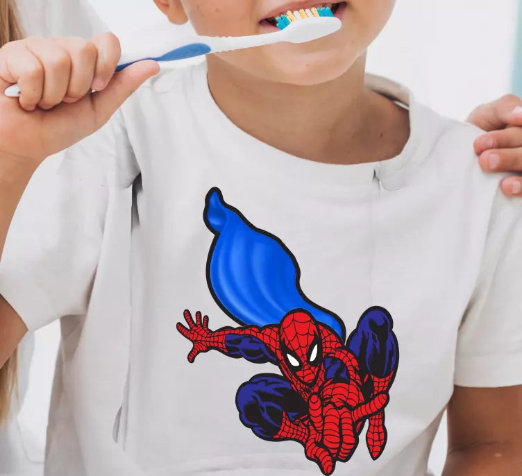 이 생동감 넘치는 디자인은 파란 망토를 두른 장난기 가득한 거미 영웅을 특징으로 하며, 아이들에게 안성맞춤입니다. 슈퍼히어로를 좋아하는 이들에게 이상적이며, 재미와 모험의 본질을 포착하여 행사와 일상복에 모두 잘 어울리는 선택입니다.