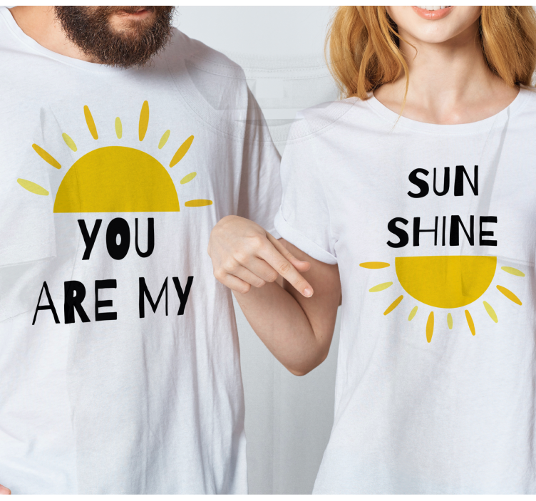 참조:: T5107이 매력적인 디자인은 밝은 태양 모티프와 따뜻하고 애정 어린 문구로 장식된 일치하는 상의를 입은 커플을 특징으로 합니다. 화사한 색상은 기쁨과 연결의 감정을 불러일으켜 사랑을 기분 좋게 표현하는 데 완벽한 선택이 됩니다.