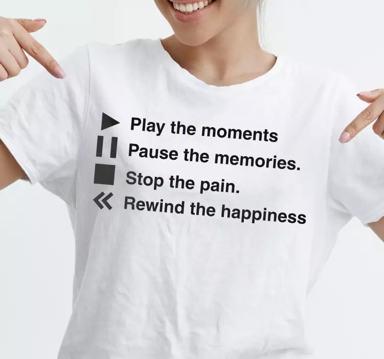 이 티셔츠는 재생 기능을 갖추고 있으며, 관련 텍스트 줄과 함께 되감기, 일시 중지, 중지 및 재생 주제를 표시하는 라디오 버튼 테마가 있습니다. 아름다운 인용문과 함께 이 디자인을 착용하십시오.