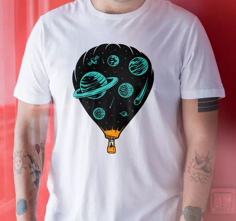 티셔츠 우주 속 모험우리의 티셔츠 우주 속 모험는 화려한 열기구와 다양한 행성들이 가득한 우주를 탐험하는 개념적 삽화로 디자인되었습니다. 이 티셔츠는 우주 여행의 신비로움과 탐구의 열정을 담아내며, 당신의 개성을 한층 더 돋보이게 해줍니다.