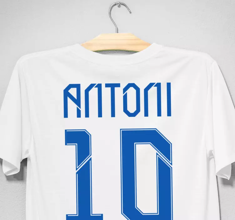 이 디자인은 개인화된 이름과 숫자를 인상적인 스타일로 보여줍니다. 굵은 타이포그래피는 'Antoni'라는 이름과 '10'이라는 숫자를 강조하여 스포츠 애호가들에게 적합한 역동적이고 눈길을 끄는 모습을 만들어냅니다.