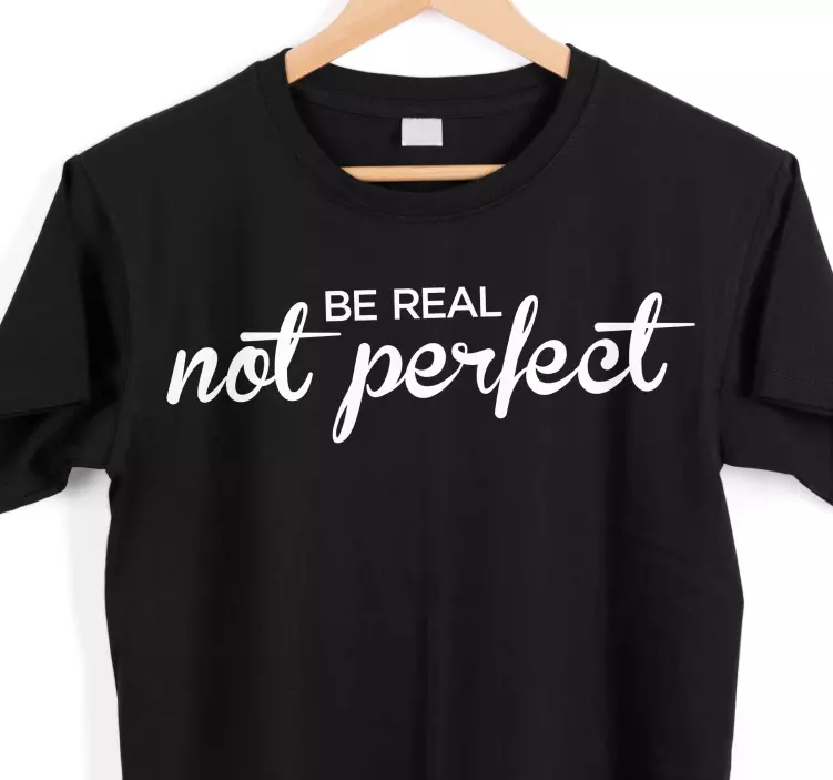 이 세련된 아이템은 'Be Real Not Perfect'라는 문구를 매력적인 글꼴로 표현하며, 동기 부여의 메시지를 전달합니다. 대비되는 색상이 미니멀한 미학을 강조하여, 진정성과 자신감을 고취시키는 캐주얼 웨어에 완벽하게 어울립니다.