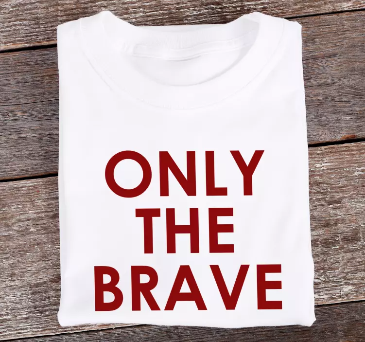 이 디자인은 용기를 강조하는 굵은 텍스트 문구를 특징으로 합니다. 강렬한 타이포그래피가 시선을 사로잡고 용기의 메시지를 전달합니다. 힘을 표현하기에 이상적이며, 강렬한 문구를 선호하는 사람들과 공감하는 작품입니다.