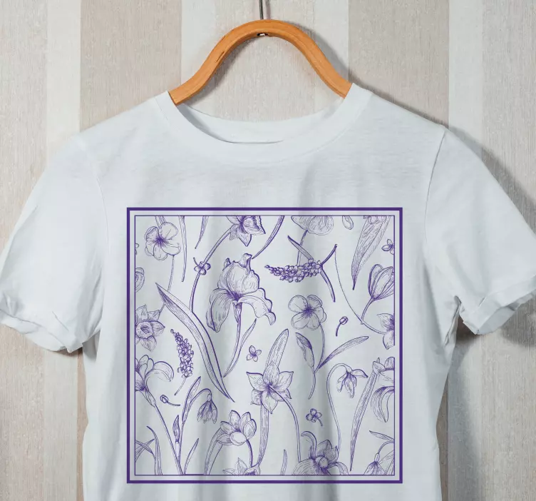 자연의 아름다움을 담은 티셔츠 식물 모티프 배열는 크로커스와 다양한 꽃들이 만발한 디자인으로 시선을 사로잡습니다. 자주색의 매력적인 패턴 배경은 마치 아트워크 같은 느낌을 주며, 여러분의 개성을 더욱 돋보이게 해줍니다. 이 제품은 미술과 일러스트의 조화로, 자연을 사랑하는 이들에게 완벽한 선택이 될 것입니다.