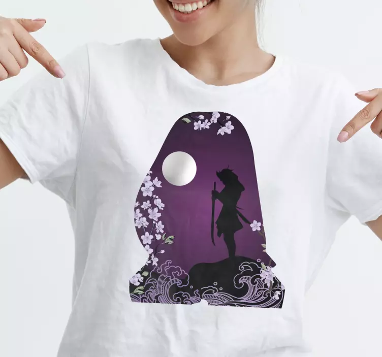이 세련된 작품은 벚꽃과 달을 배경으로 한 전사 실루엣을 특징으로 하며, 생동감 넘치는 보라색 배경이 돋보입니다. 꽃의 요소들이 우아함을 더해 주어, 예술성을 중시하는 표현력이 풍부한 개인들에게 완벽한 아이템입니다.