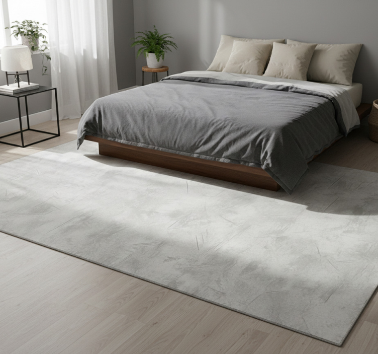 미니멀리즘 디자인으로, 미세한 질감과 희미한 선 패턴이 있는 밝은 회색 표면이 특징입니다. 전체적인 모습은 매끄럽지만 질감이 있어 현대적인 미감을 자아냅니다. 가장자리는 깔끔하게 마감되어 있어 깨끗한 인상을 주며 디자인의 단순함을 강조합니다. 침실용 비닐 카펫 산업용 회색