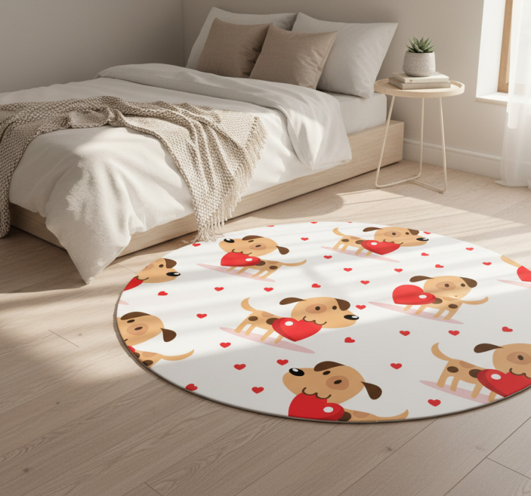 디자인은 흰색 배경에 빨간 하트를 들고 있는 스타일화된 개들이 장난스럽게 배열되어 있습니다. 여러 개의 작은 빨간 하트가 주위를 떠다니며 애정의 주제를 더욱 강조합니다. 개들은 만화 스타일로, 밝은 갈색 털에 어두운 반점이 있어 즐겁고 사랑스러운 분위기를 풍깁니다. 침실용 비닐 카펫 빨간 개들은 그 자체로도 매력적인 디자인 요소로, 침실에 생동감을 불어넣어 줍니다. 이 카펫은 귀여운 빨간 개들이 그래픽으로 표현되어 있어, 아늑한 느낌을 주며, 공간을 더욱 특별하게 만들어 줍니다. 또한, 다양한 인테리어 스타일과 잘 어울려 어떤 공간에서도 활용할 수 있는 매력을 지니고 있습니다.