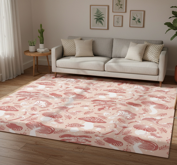 이미지는 다양한 버섯과 유기적인 형태로 가득 찬 생동감 있는 디자인을 특징으로 합니다. 색상은 풍부한 빨간색에서 부드러운 흰색까지 다양하며, 연한 복숭아색 배경에 놓여 있습니다. 섬세한 잎사귀와 작은 점들이 버섯 사이에 흩어져 자연적인 주제를 강조하며, 눈길을 끌고 장난기 있는 시각적 패턴을 만들어냅니다. 비닐 카펫 꽃과 식물 베이지 배경의 숲 속 버섯은 자연의 아름다움을 집안으로 가져오는 훌륭한 선택입니다. 이 제품은 화사한 꽃과 다양한 식물들이 조화롭게 어우러진 디자인으로, 편안한 분위기를 연출해 줍니다. 베이지 배경 위에 그려진 숲 속 버섯은 따뜻한 느낌을 주며, 어떤 인테리어와도 잘 어울립니다. 이 비닐 카펫은 세련된 스타일과 함께 기능성을 갖춘 아이템으로, 집 안의 다양한 공간에서 활용할 수 있습니다.