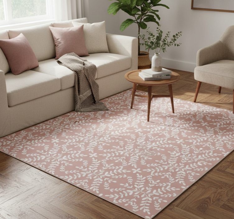 부드러운 분홍색 배경 위에 흰색의 섬세한 잎과 꽃잎이 반복적으로 배치된 꽃무늬 패턴이 있습니다. 디자인은 대칭적인 레이아웃을 가지고 있어 시각적인 조화와 함께 움직임의 느낌을 만들어냅니다. 식물 모티프의 복잡한 디테일이 유기적인 감각을 더해 전체적인 미적 매력을 높입니다. 비닐 카펫 꽃과 식물 빈티지 장식 잎 패턴은 자연의 아름다움을 실내로 가져오는 매력적인 디자인으로, 꽃과 식물의 빈티지 느낌을 잘 살린 패턴이 특징입니다. 이 카펫은 어떤 공간에서도 편안하고 아늑한 분위기를 연출해 주며, 세련된 인테리어와 잘 어울립니다.