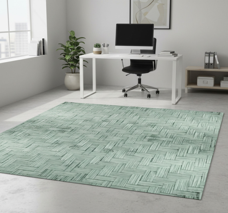 이 이미지는 엮인 가닥을 닮은 복잡한 패턴이 있는 질감 디자인을 보여줍니다. 색상 팔레트는 부드러운 녹색 음영으로, 차분하고 초대하는 느낌을 줍니다. 패턴의 균일성은 조화로운 느낌을 더하며, 미세한 선들은 자연스럽고 유기적인 느낌을 자아냅니다. 기하학적 효과 비닐 카펫 구조화된 정사각형