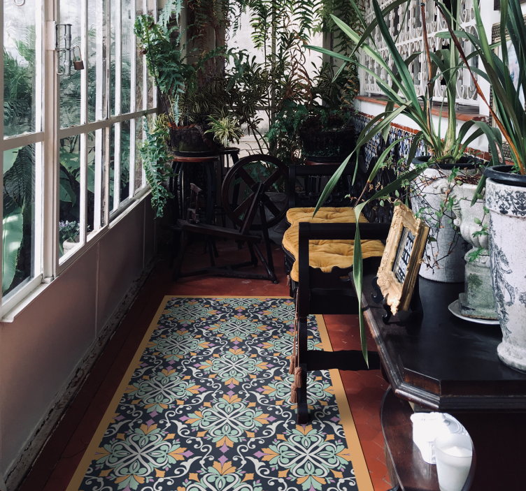모자이크 효과 비닐 카펫은 모자이크에서 영감을 받은 패턴으로 디자인되었습니다. 이 디자인은 그래픽적으로 아름다운 타일과 꽃 모티브를 표현하고 있어 장식용으로 사용하기에 이상적입니다. 또한 화려한 디자인은 공간을 생생하게 만들어줍니다.