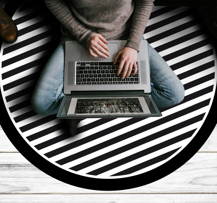 교차하는 검정과 흰색 줄무늬가 돋보이는 이 원형 디자인은 역동적인 시각적 효과를 만들어냅니다. 매끄러운 선들은 균일하여 현대적인 미감을 제공하며, 대담하면서도 세련된 느낌을 주어 다양한 장식 스타일에 적합합니다.
