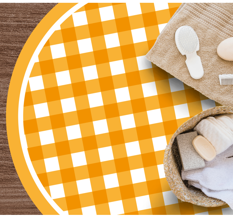 참조:: R19703생기 있고 따뜻한 체크 무늬는 교차하는 주황색과 흰색 사각형으로 구성되어, 장난스럽지만 편안한 효과를 만들어냅니다. 디자인은 원형으로, 단단한 주황색 테두리가 둘러져 있어 기분 좋은 시각적 효과를 더합니다.