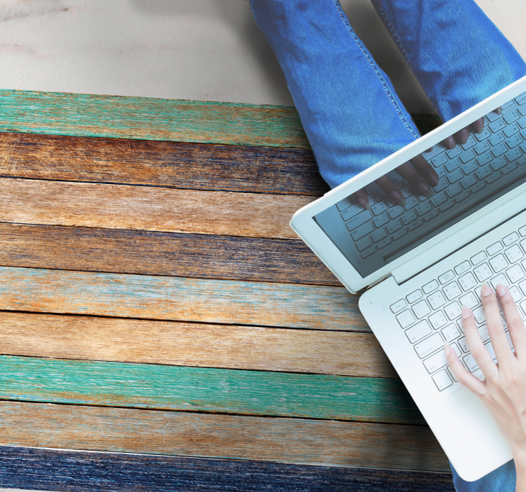 다양한 갈색, 녹색, 파란색의 나무 판자로 구성된 생동감 넘치는 디자인. 질감은 소박하며, 자연적인 불완전성과 색상 변화를 보여주어 따뜻하고 초대하는 분위기를 만들어냅니다.