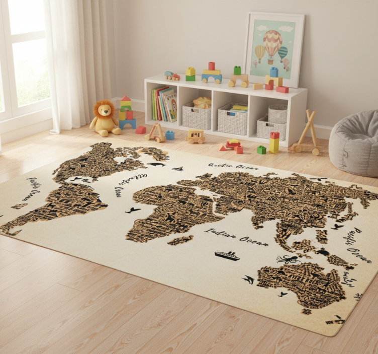 디자인은 부드러운 베이지 배경에 강렬한 검정색으로 표현된 세계 지도 일러스트레이션을 특징으로 합니다. 다양한 국가와 바다가 스타일화된 타이포그래피로 표기되어 있으며, 상징적인 랜드마크와 야생 동물의 작은 이미지가 보완되어 있습니다. 복잡한 패턴은 세계 지리를 시각적으로 매력적으로 표현합니다. 세계 지도 비닐 카펫 텍스트 프로필 비닐은 고유한 디자인으로 세련된 공간을 완성해줍니다. 이 카펫은 세계 지도를 그래픽으로 표현하여 귀하의 인테리어에 독특한 매력을 더해줍니다. 집이나 사무실에서 사용할 수 있으며, 다양한 스타일의 공간과 잘 어울립니다. 편안한 느낌을 주는 동시에 실용성을 갖춘 이 제품은 언제나 기분 좋은 분위기를 만들어줄 것입니다.