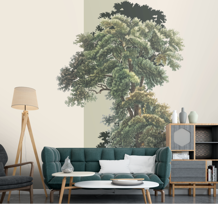 이 디자인은 울창한 녹색 잎사귀가 있는 크고 정교한 나무를 특징으로 합니다. 자연의 아름다움을 포착하며, 잎과 가지의 조화로운 조합을 보여주어 반성과 휴식을 초대하는 평화롭고 고요한 분위기를 만들어냅니다.
