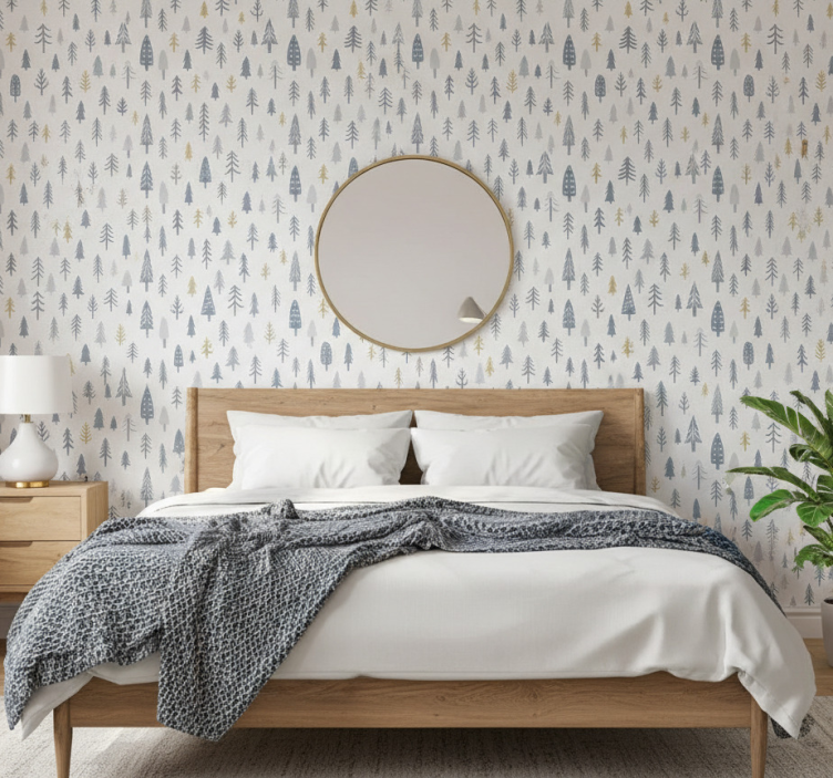 다양한 파란색, 초록색, 금색 음영의 매력적인 나무들이 평화로운 숲의 장면을 만들어냅니다. 장난기 가득한 배열은 키가 큰 나무와 작은 나무를 혼합하여 고요한 분위기를 한층 더합니다. 이 디자인은 상쾌한 색상과 역동적인 실루엣으로 자연의 본질을 포착합니다. 북유럽 벽지 겨울 숲 풍경은 아름다운 겨울 숲을 그래픽으로 표현하여 따뜻하고 아늑한 분위기를 제공합니다. 이 제품은 자연의 평화로운 풍경을 실내로 가져오는 데 최적화되어 있으며, 집안 곳곳에 조화롭게 어우러질 수 있습니다.