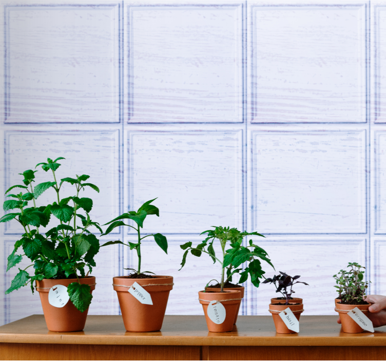이 벽지 텍스처 타일은 파란색과 흰색의 조화로운 패턴으로 디자인되어 있습니다. 목재 느낌을 살린 사각형 무늬와 질감이 어우러져 있으며, 쿼드룬 형태의 패턴은 마치 자연에서 영감을 받은 듯한 느낌을 줍니다. 식물과 허브, 정원의 푸른 잎을 연상시키는 디자인은 공간에 생명력을 불어넣어 주며, 어떤 인테리어와도 완벽하게 조화를 이룹니다.